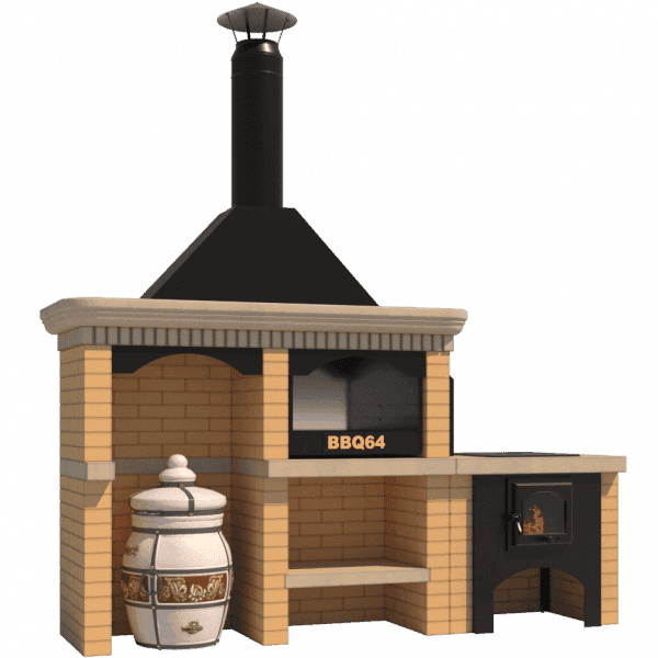 Мангал "BBQ64" с печкой под казан и нишей под тандыр солома кирпич